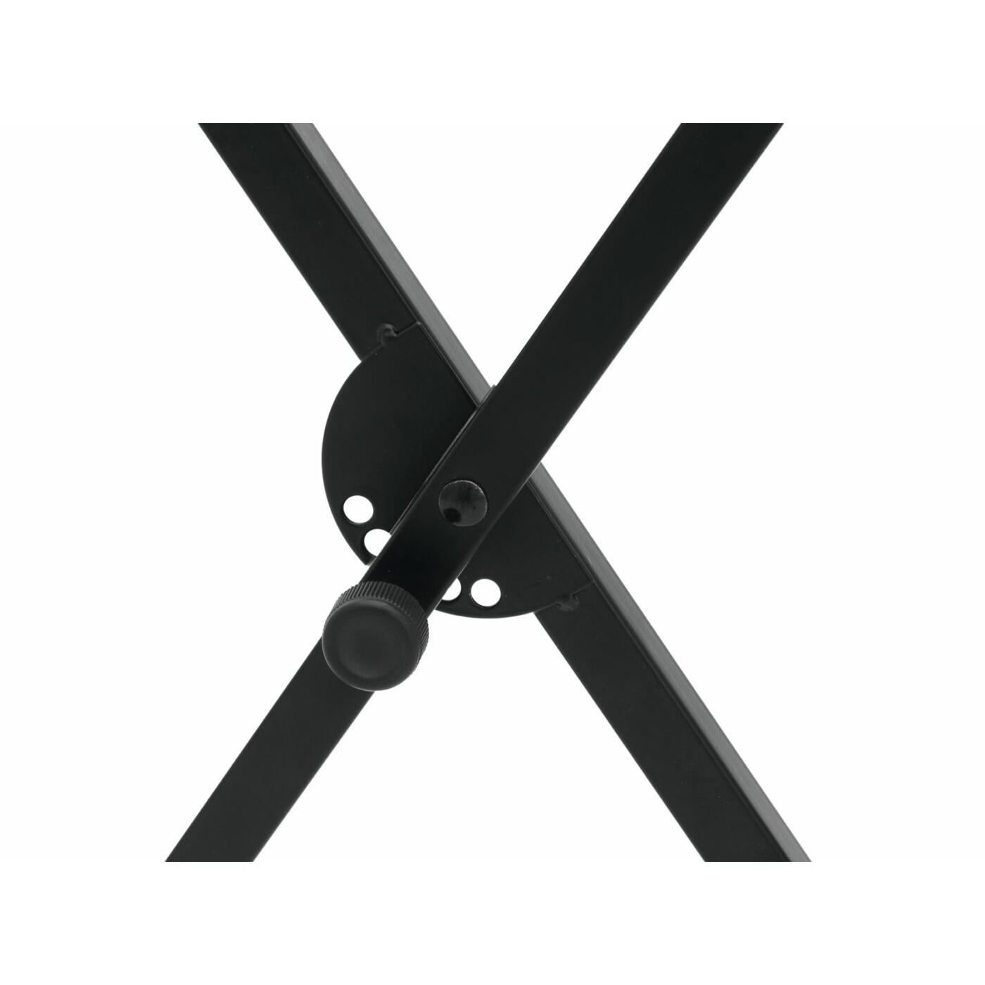 Stevig en lichtgewicht keyboardstandaard die in 5 verschillende hoogtes is in te stellen. Eenvoudig door een knop met veer en 5 gaten waarmee je de hoogte selecteert.