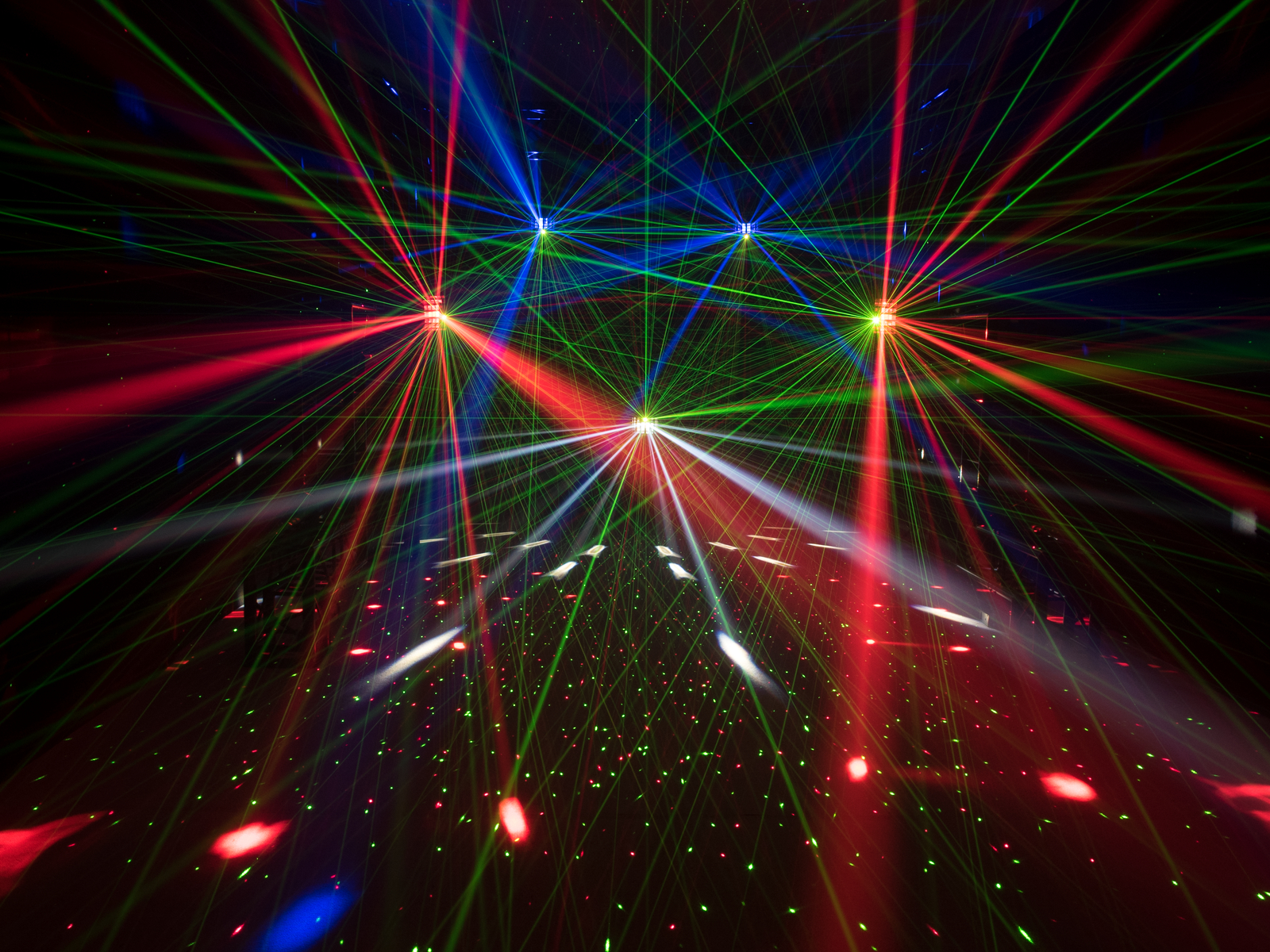 • 2 laser diodes project hundreds of red and green laser beams