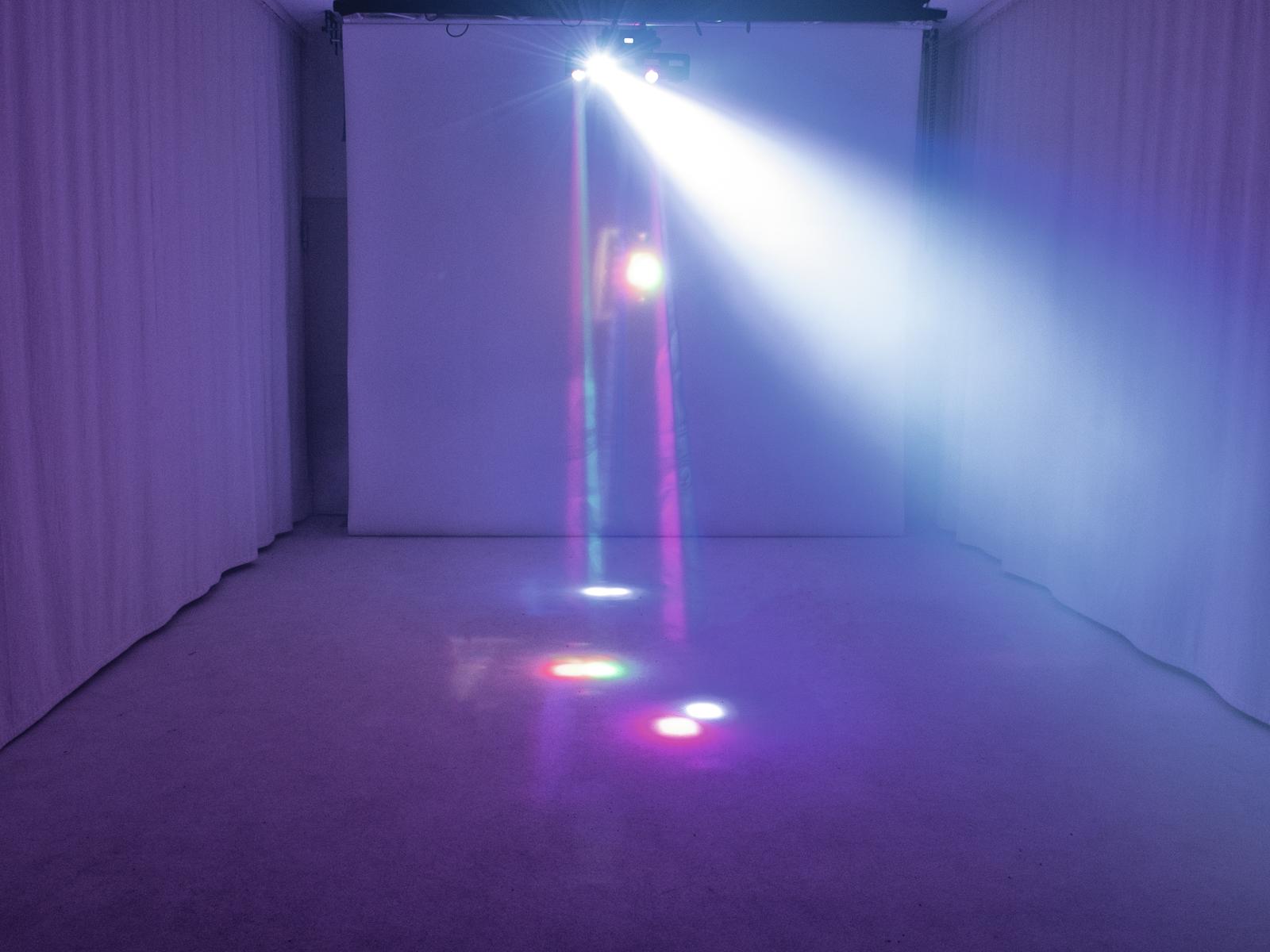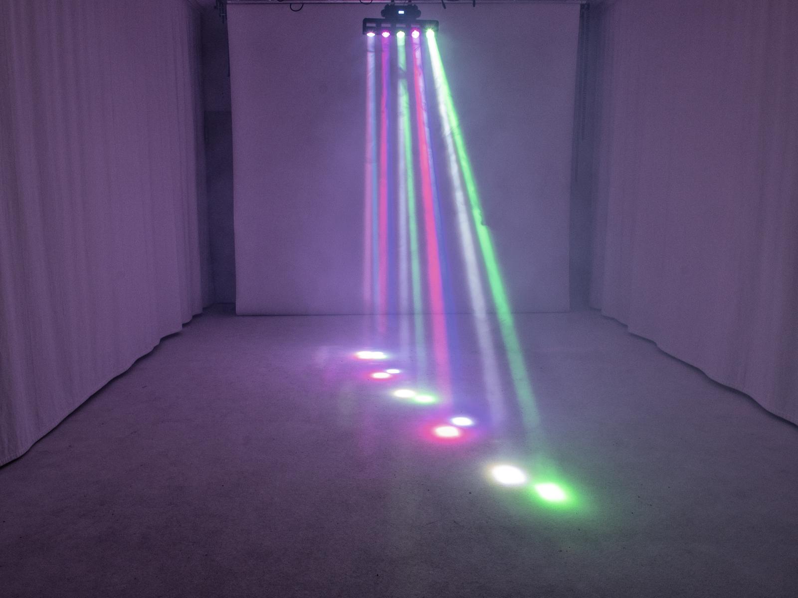 - Functions: Colored beams in R, G, B and W, stepless RGBW color mixture, color presets, auto mode, sound control, Master/Slave function, built-in programs, strobe effect with adjustable speed, dimmer
