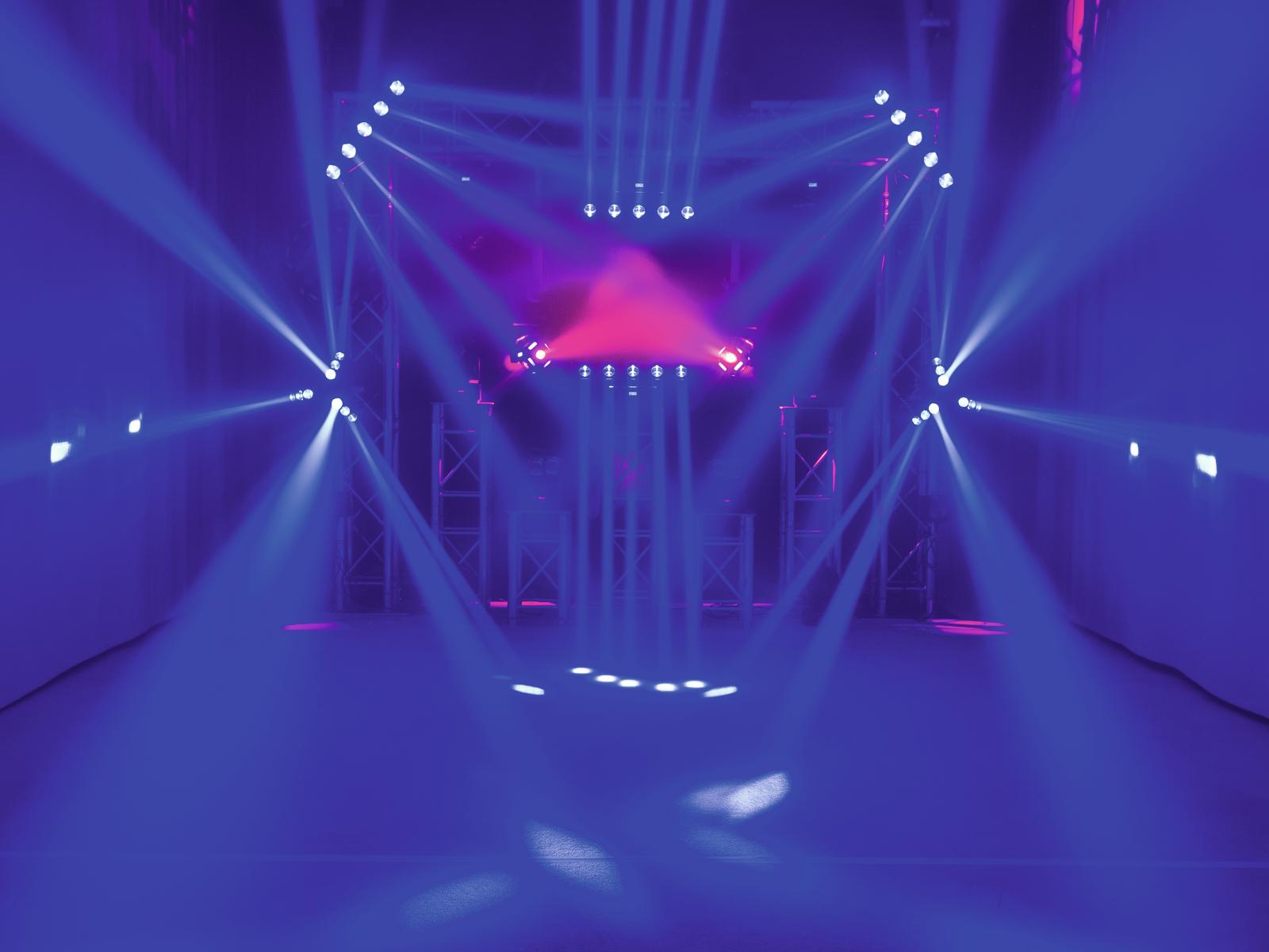 - Equipped with five 10 W quadcolor LEDs in the colors red, green, blue and white