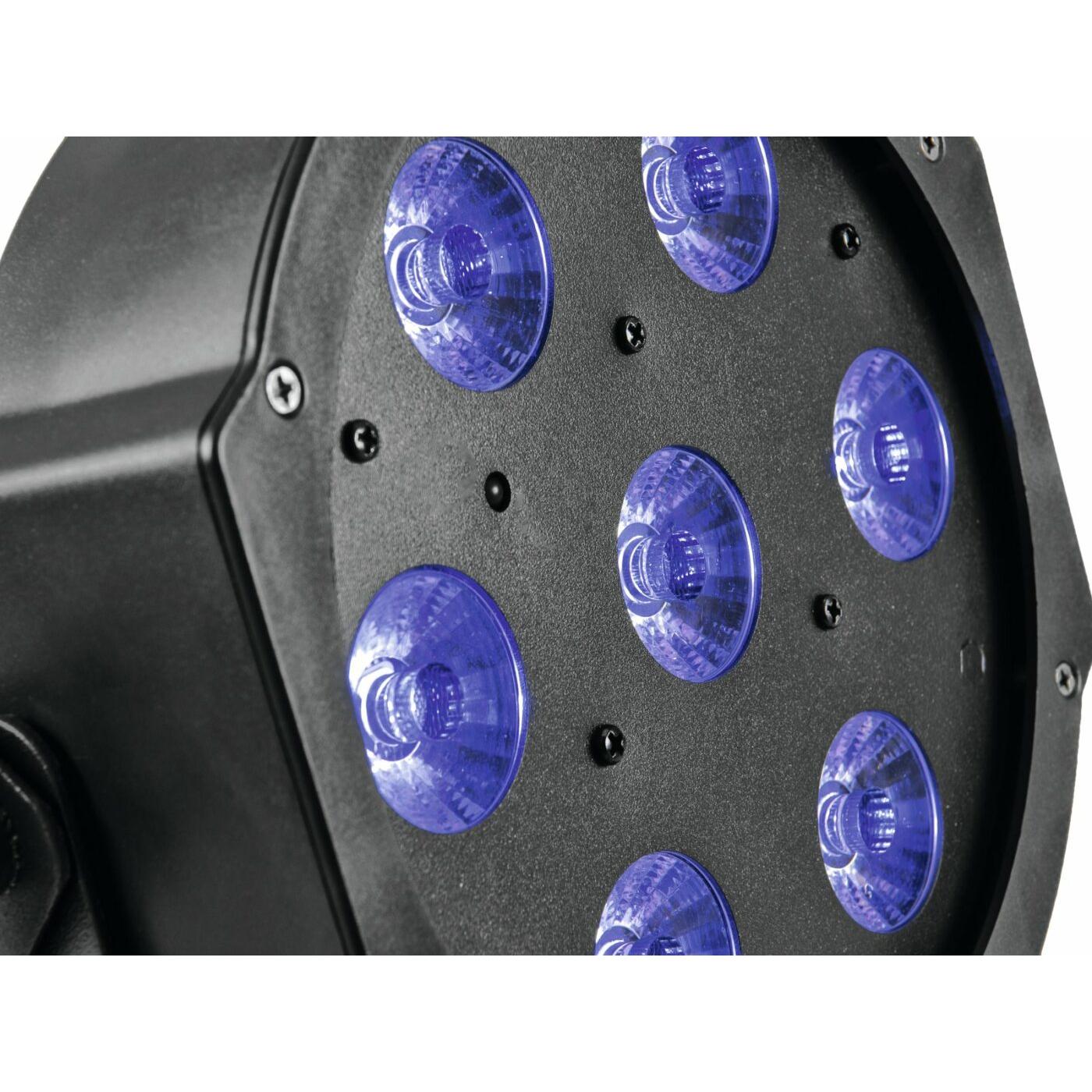 • Uitgerust met 7 x 10 W HCL LED in rood, groen, blauw, amber, wit en UV