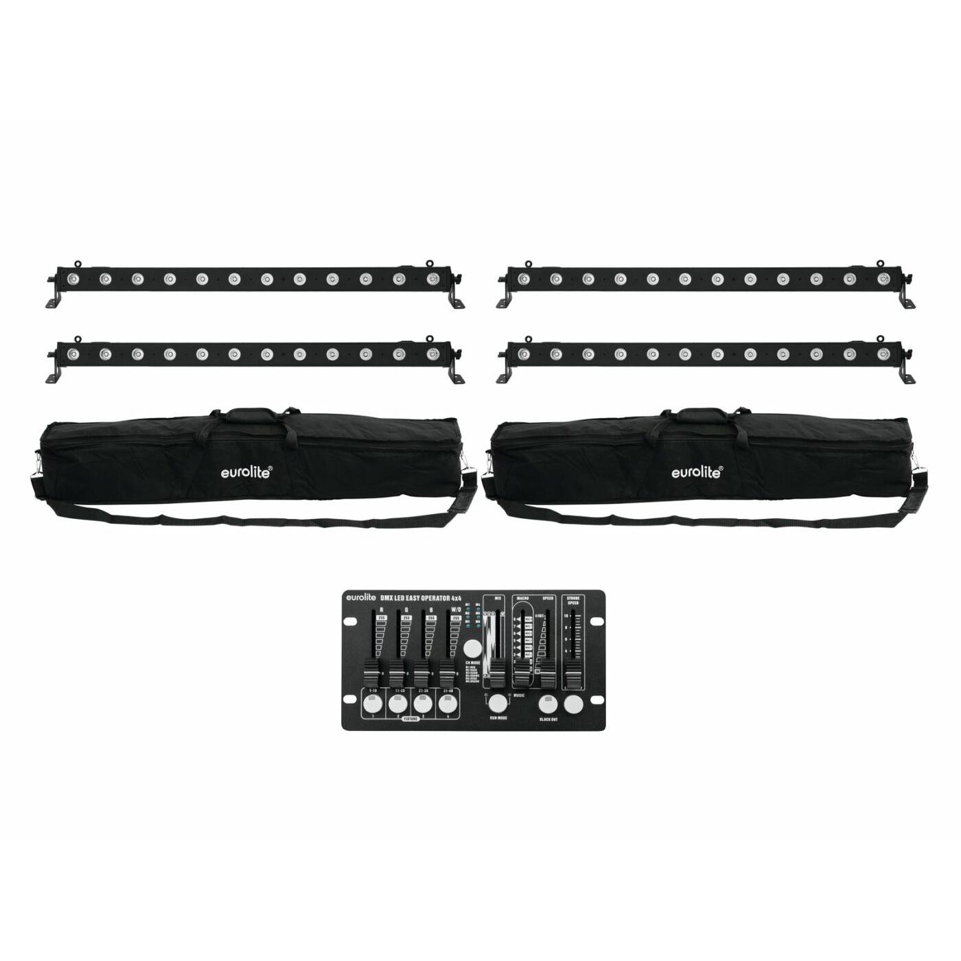 EUROLITE Set 4x LED BAR-12 QCL RGBW + 2x Soft Bag + Controller