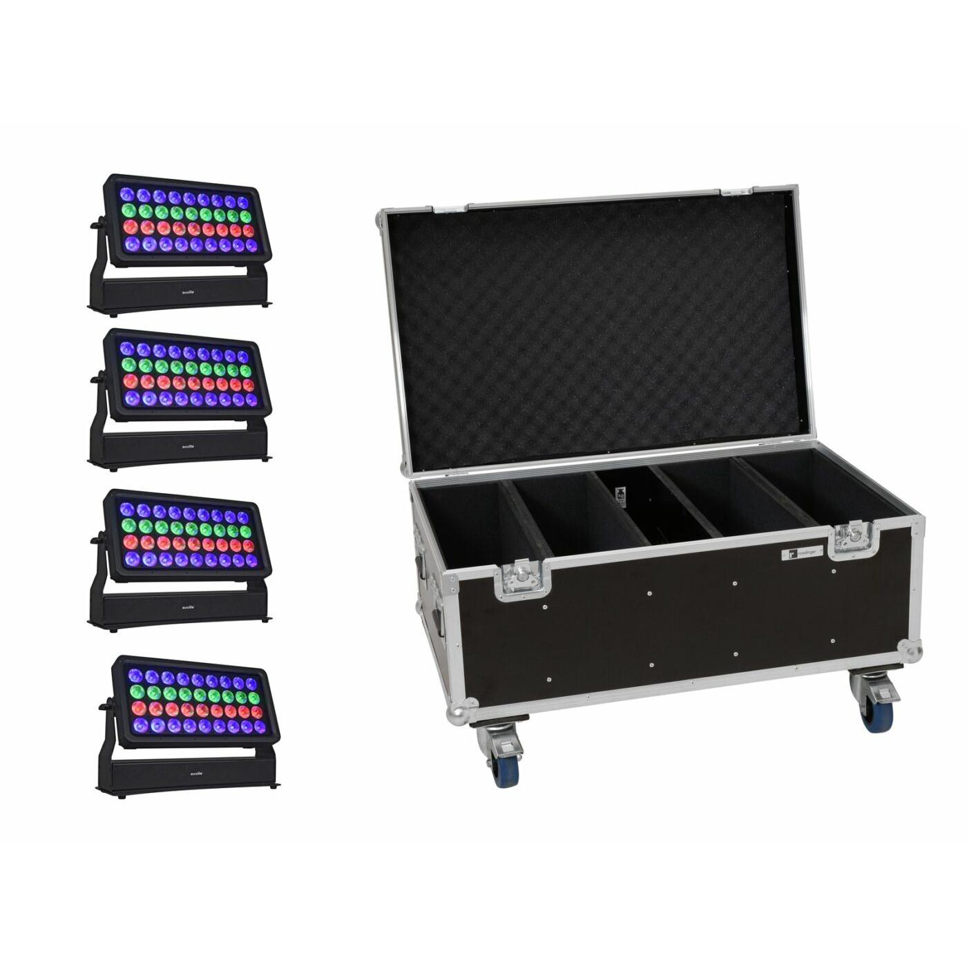 EUROLITE Set 4x Multiflood Pro IP RGBW Wash MK2 + Case