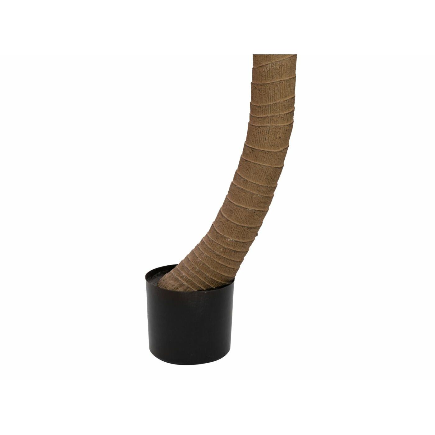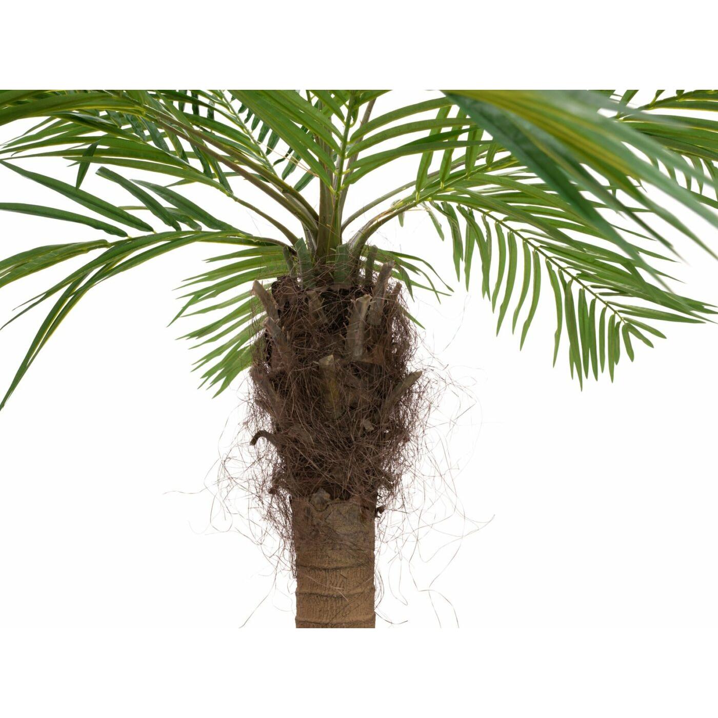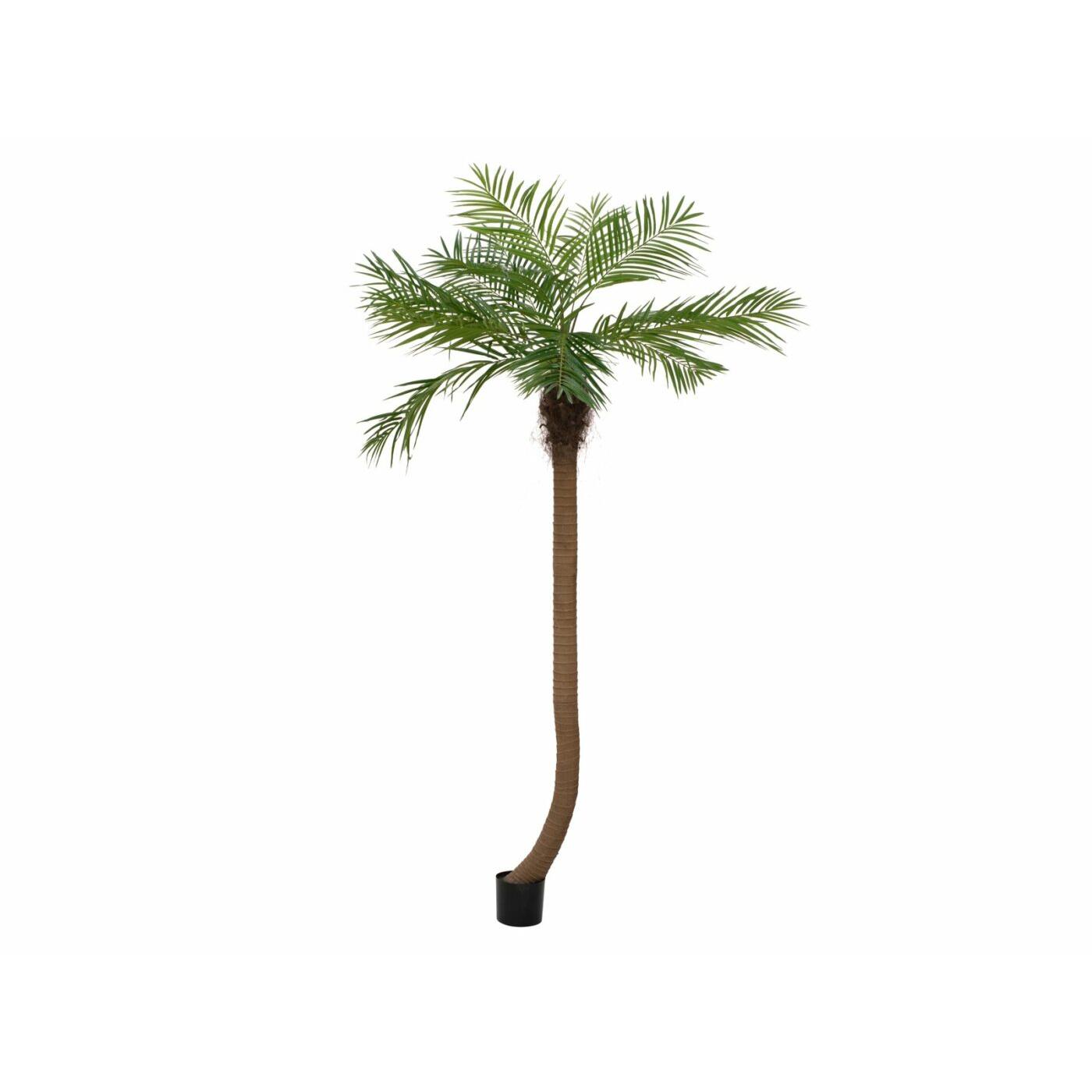 Mediterranean flair without time-consuming cultivation!In the twinkling of an eye, you can transform your hotel, your wellness landscape or your sunroom into a feel-good oasis with the artificial phoenix palm.With a total height of 240 cm, it is not to be overlooked and convinces with a modern, high-quality processing. This is especially evident in the artificial palm trunk bent directly above the plant pot, which can hardly be distinguished from its natural model. The bendable palm fronds are equipped with leaves made of textile fiber material.The artificial plant is delivered in two parts: the trunk and the palm crown, which is pre-assembled on a shaft, only need to be put together and the fronds bent into shape.