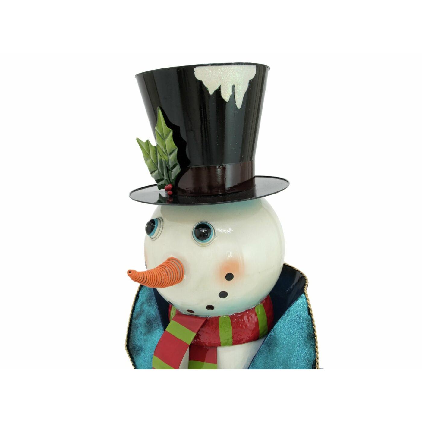 Handcrafted snowman figure made of metal, painted with colors