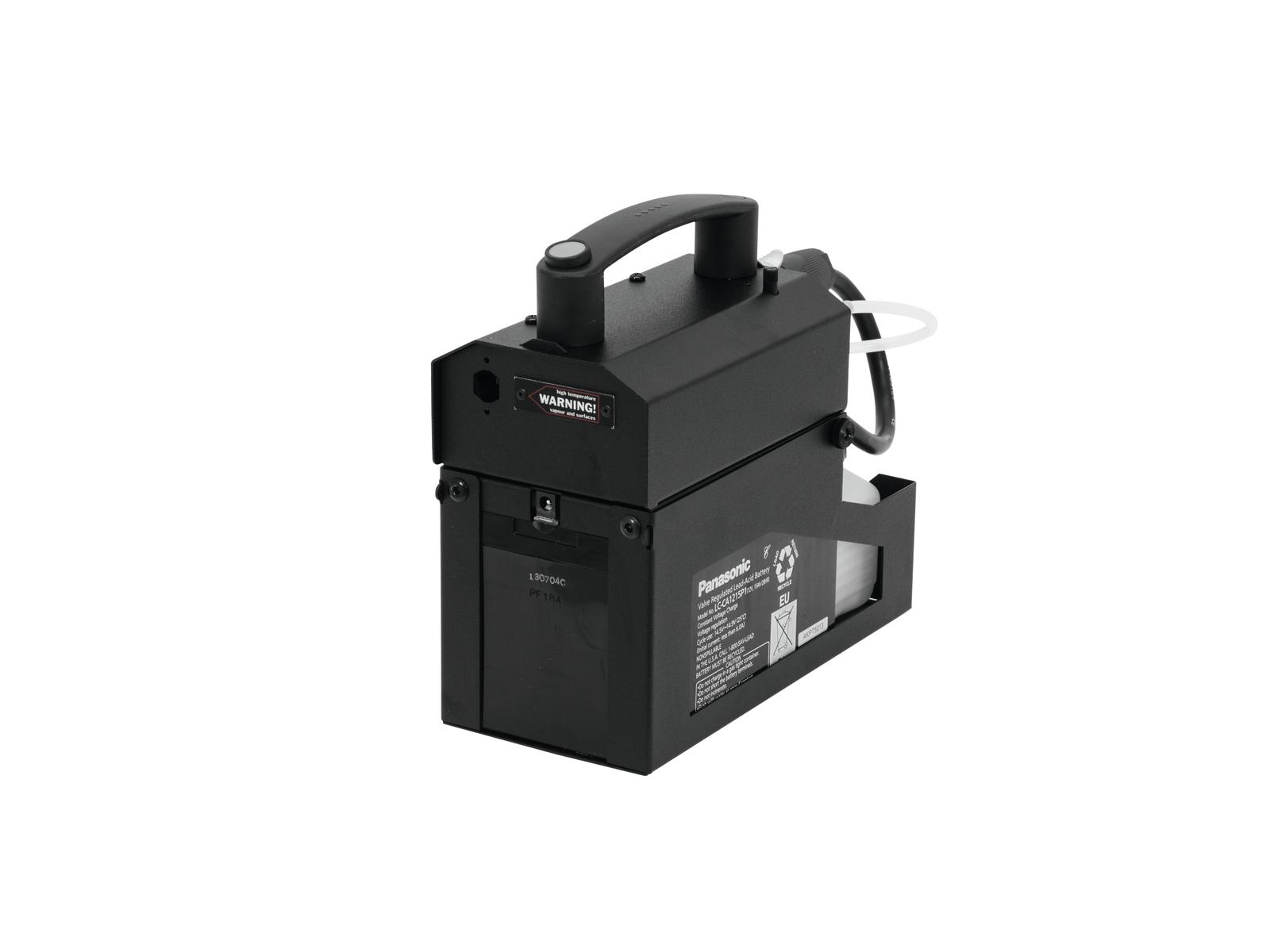 - Professional battery fog machine for up to 10 minutes of continuous fog