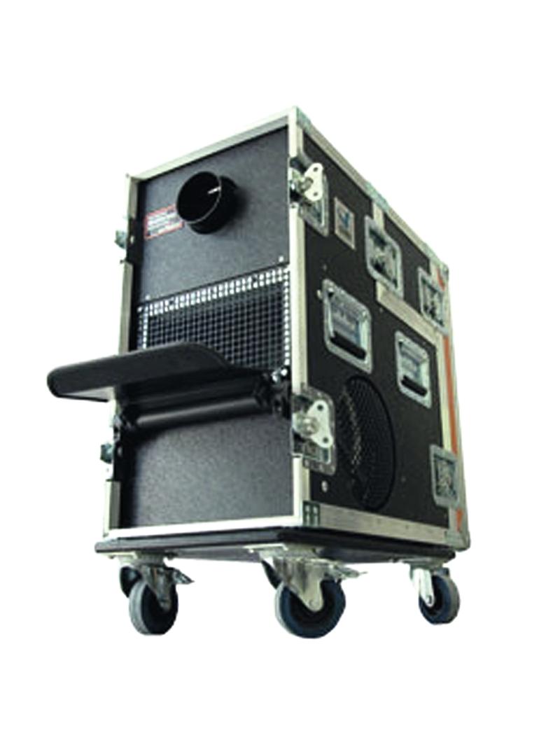 - Professional 2600 W fog machine with fan in its own case and DMX connection