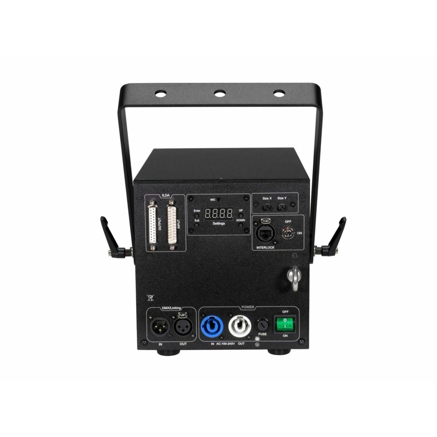 • Control via sound to light via microphone; stand-alone; master/slave function; ILDA; DMX