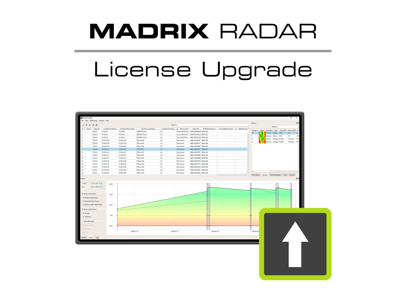 - MADRIX RADAR fusion license upgrades to higher licenses are possible several times per MADRIX KEY