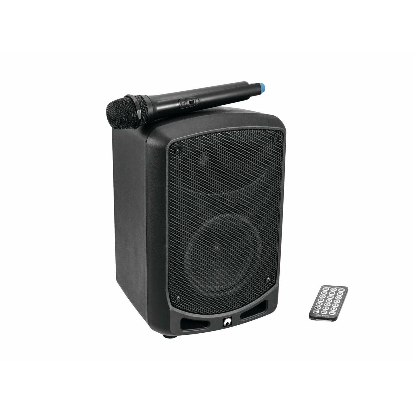 Met deze mobile luidsprekerset ben je vrij om te gaan en staan waar je wilt. Geef toespraak, zing een serenade of doe bijvoorbeeld aan karaoke. Deze luidspreker heeft geïntegreerde ontvanger voor een UHF microfoon, Bluetooth ontvanger, SD card en USB reader voor het versterken van je stem maar ook voor het afspelen van muziek via bijvoorbeeld je telefoon of tablet. Of wanneer je deze op een SD card of USB stick heb staan.