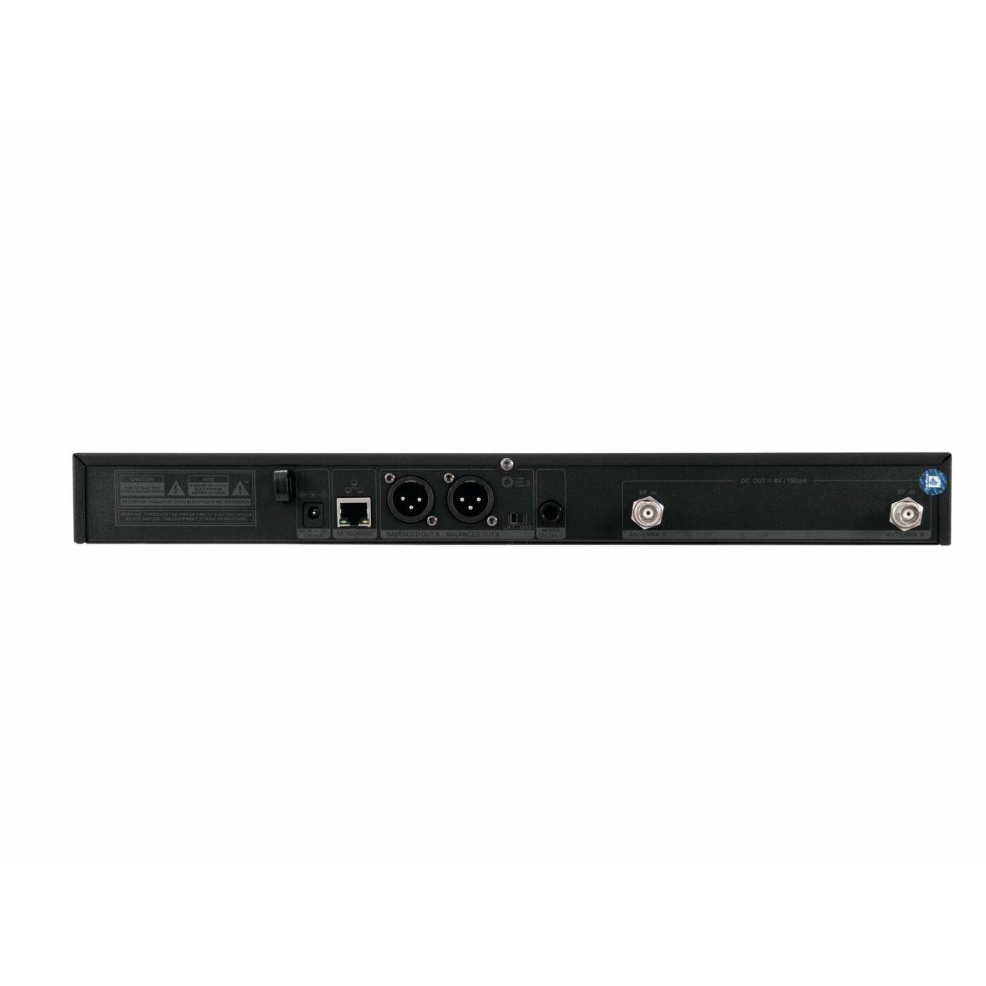 - LCDs for battery status of the transmitters, antenna A/B, RF reception level, AF audio level and frequency