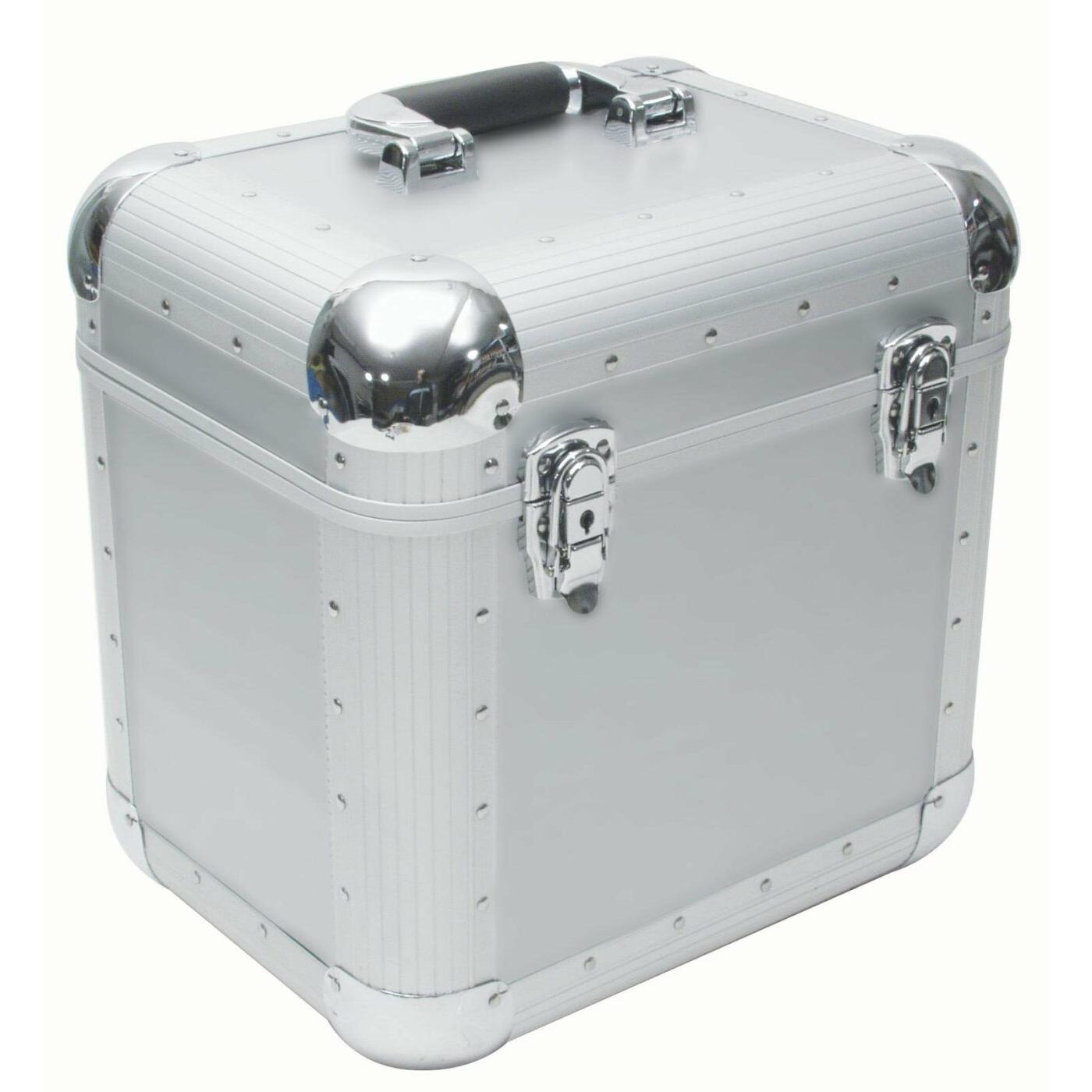 Record case in aluminum housing for 80 LPs
