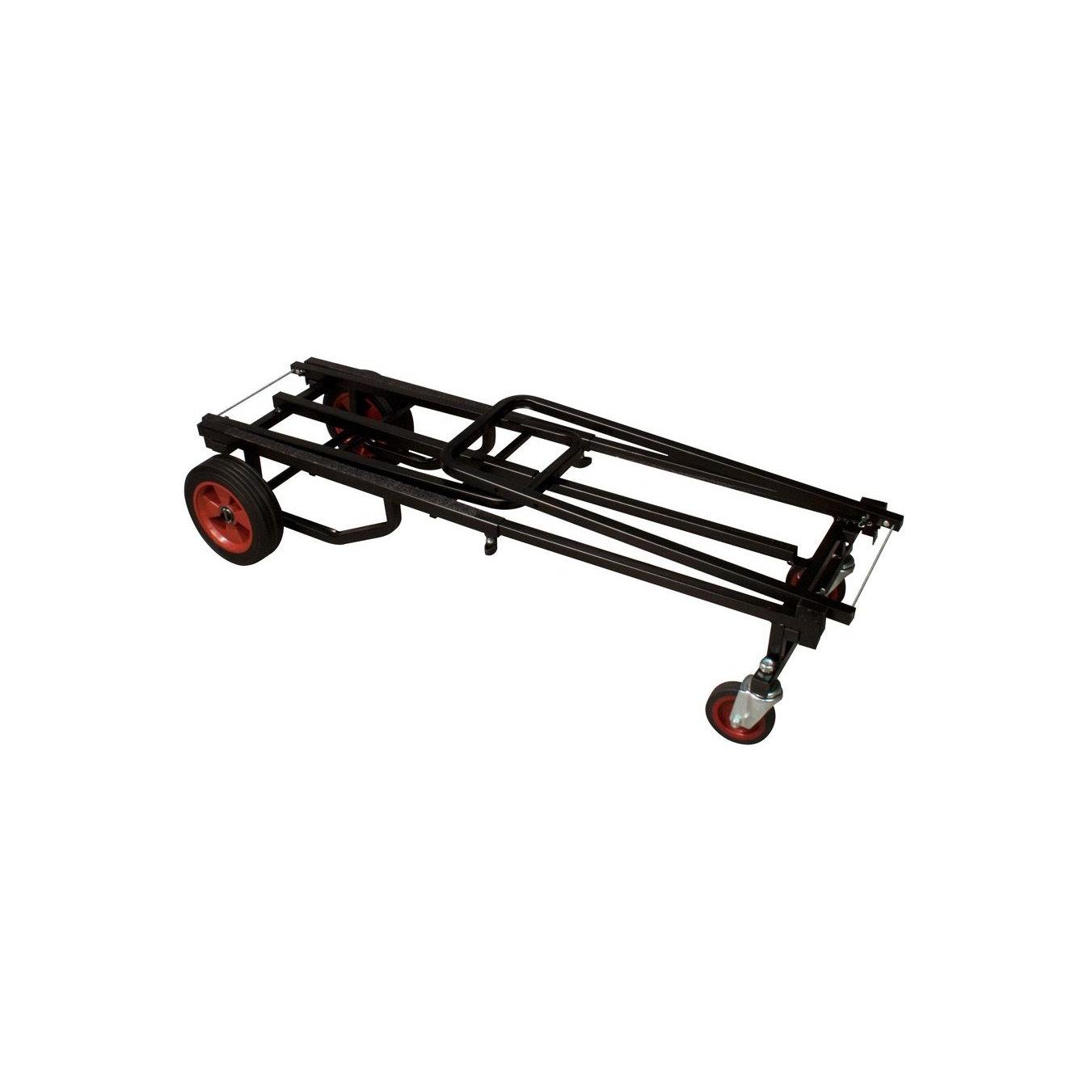 Versatile multifunction transport cart for loads up to 150 kgThe ROADINGER Stage Donkey XL is the perfect companion for your audio systems, guitars, DJ equipment and much more. It is the ideal transport assistant for your stage, in the studio or at events.The no-flat wheels are made of solid, shock-resistant material and the swivel front wheel is equipped with a brake for safe loading and unloading. The light steel construction with powder coating provides the necessary stability.You can fold the Stage Donkey comfortable and easy for transport and storage.The Stage Donkey can be used in a variety of ways, e.g. as a sack truck that can carry loads of up to 50 kg. For use as a transport trolley, the maximum load is 150 kg.